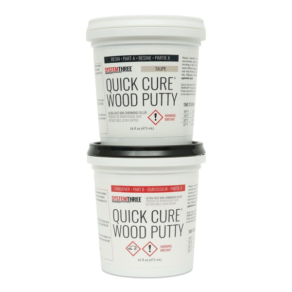 Reduce downtime and increase productivity in manufacturing and production environments. Quick Cure Wood Putty fills knots and voids in a single fill without shrinking. It sets in 10 minutes and sands in 1 hour. This unique wood filler machines easily without clogging up abrasives. Quick Cure Wood Putty is stainable and is compatible with most finishes. It comes in 6 standard colors to match most wood species Taupe, Red Oak, Mahogany, Cherry, Black Walnut, and Ebony.