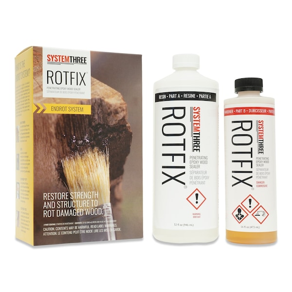 Rot Fix is an easy to use low viscosity epoxy wood sealer, primer and consolidate for repair and restoration of rotted, deteriorated, dried out or spongy wood. Rot Fix is a component of the End Rot system. It creates a sound, waterproof base for repair and restoration filler putty. It penetrates deep into deteriorated and rotted wood creating a strong, solid base for restoration.