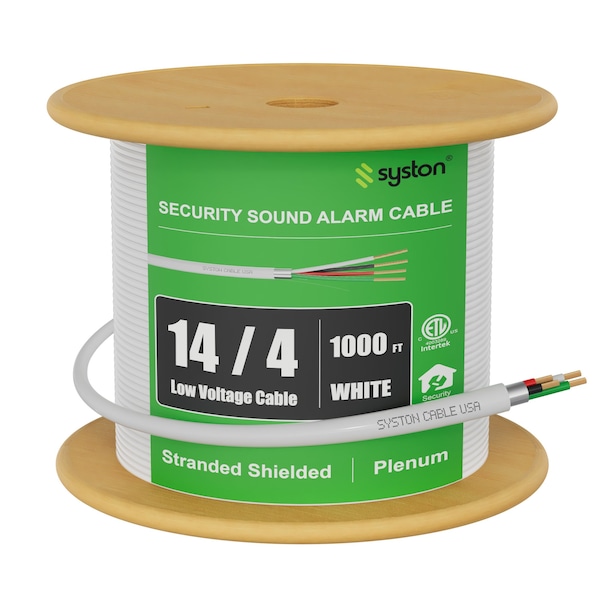 14/4 Fire Alarm Security Cable Wire, 100% Stranded Copper, Plenum CMP Shielded, Low Voltage, 1000 ft