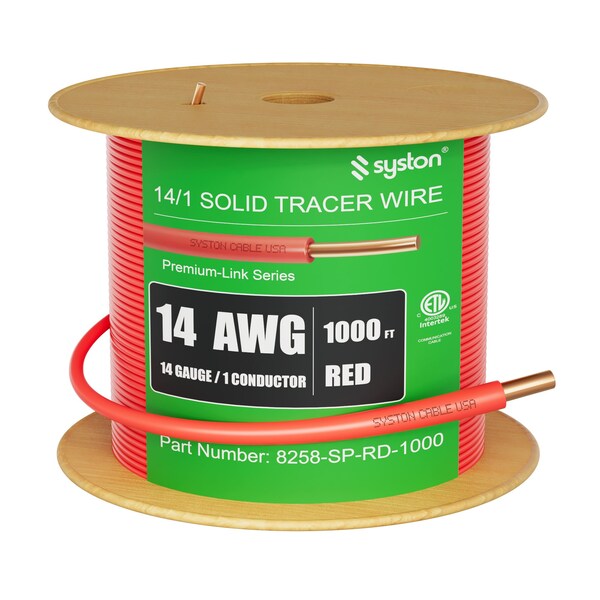 14AWG Tracer Wire Solid Copper Conductor Direct Burial Underground, Red for Locating Electrical Wire