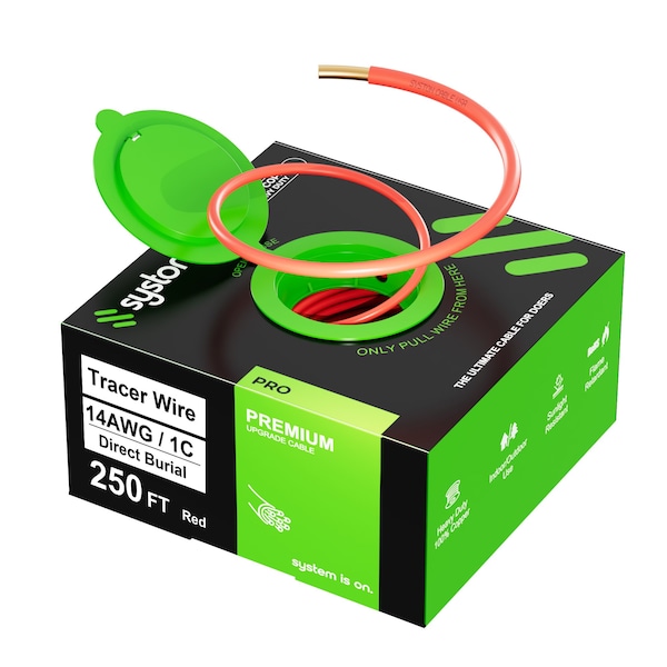 14AWG Tracer Wire Solid Copper Conductor Direct Burial Underground, Red for Locating Electrical Wire