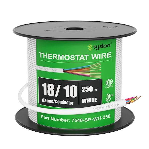 18/10 Thermostat HVAC Heating Cable Wire, 18 AWG 10-Conductor Solid Copper CL3R/CMR/FT4, 250ft White