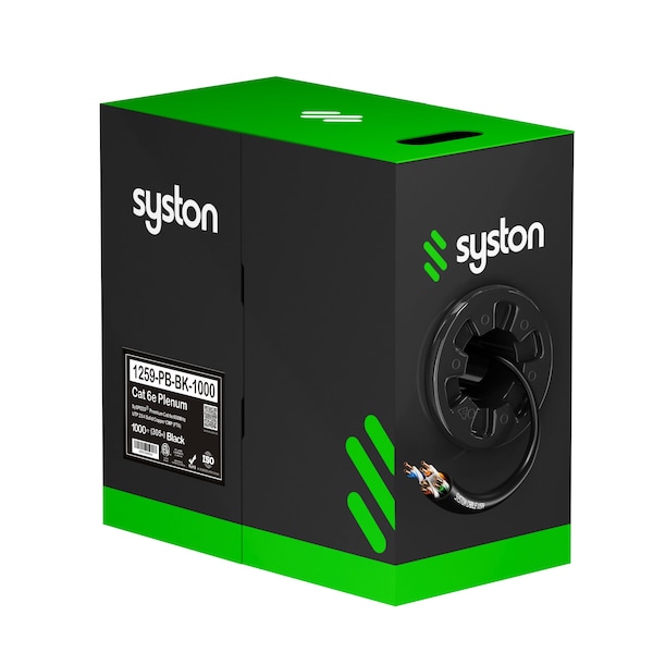 Cat 6e Ethernet Data Cable Bulk, 1000ft Black, 600MHz 23AWG Solid Copper, CMP Plenum-Rated for PoE