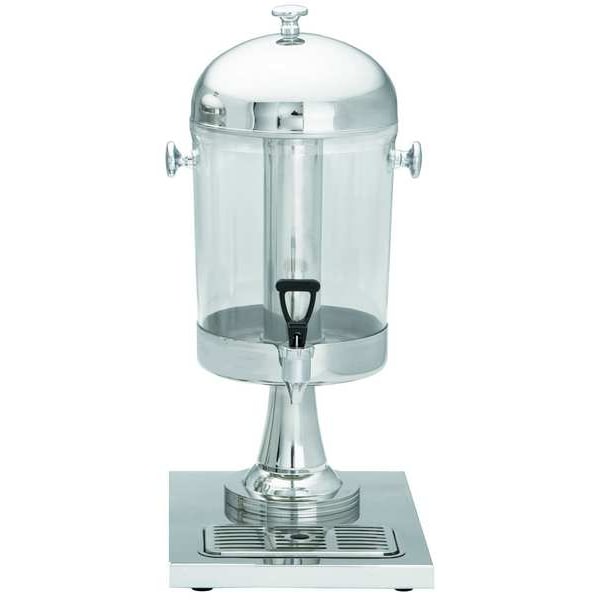 Beverage Dispenser, Capacity 2 gal, Shape Round, Color Clear, Silver, Overall Height 22 3/4 in, Overall Width 13 3/4 in, Overall Depth 10 1/4 in, Number of Dispensers 1, Material Polycarbonate, Stainless Steel, Dispenser Actuation Faucet, Includes Drainable Ice Chamber, Reservoir, Includes Spill Reservoir Yes, Maximum Cup Height 5 1/2 in, Temperature Cold