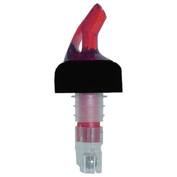 Liquor Pourer with Clear Tail, Product Type Liquor Pourer, Color Red, Includes Dip Tube, Material Plastic, Overall Diameter 1 3/8 in, Overall Height 3 3/4 in, Overall Length 1 1/8 in, Package Quantity 12