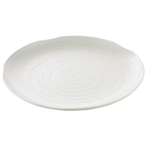 Tray, Product Type Tray, Color White, Diameter 21 3/4 in, Edge Style Curved, Features Dishwasher Safe, Finish Pebbled, Handle Included No, Material Melamine, Maximum Temperature Resistance 212 Degrees F, Overall Height 2 1/8 in, Overall Length Not Applicable, Overall Width Not Applicable, NSF Certified No, Pattern Melamine