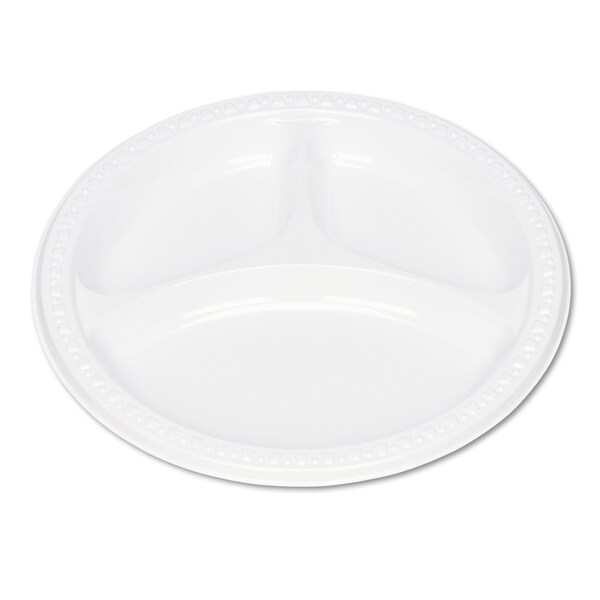 Plastic Dinnerware, 3-Compartment Plates, 9" dia, White, PK125 (Discontinued)