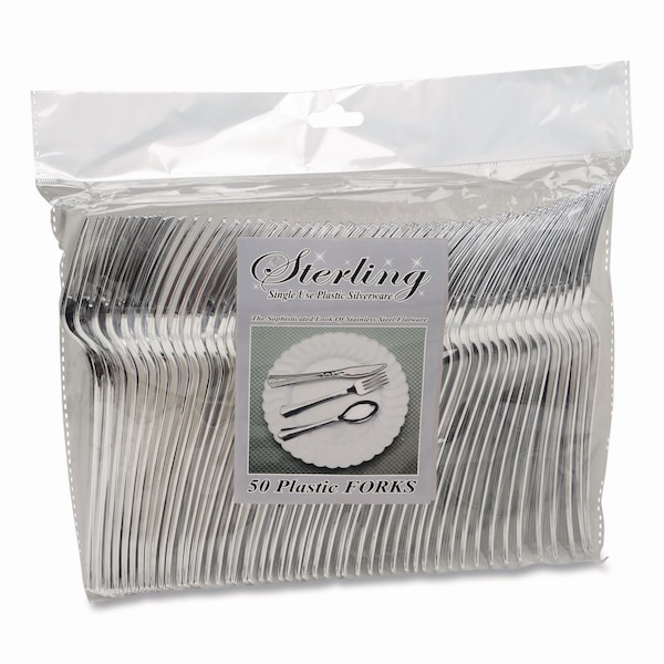 Sterling Heavyweight Plastic Cutlery, Fork, Silver, 50PK