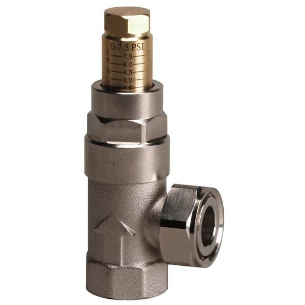 Differential Bypass Valve, Pipe Size 3/4 in NPT, Connection Type FNPT x NPT Union, Max. Pressure 200 psi, Max. Fluid Temp. 300 Degrees F, Body Material Brass