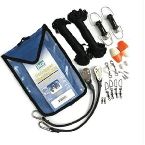 To rig 1 pair of outriggers up to 22 ft. Includes: 2 quality release clips, shock cord w/stainless steel snaps and pulley, barrel swivels, snap swivels, crimps, stainless steel pad eyes, balsa wood floats and screws, 100 ft. of UV protected dacr
