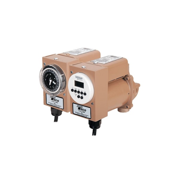Taco Plumb n Plug PNP Circulators periodically recirculate hot water through the domestic water piping system to decrease the delivery time to outlet fixtures and reduce wasted water. These UL-listed units feature quiet, efficient operation and low power consumption. Self lubricating, with no mechanical seal and Tacos unique replaceable cartridge design, Plumb n Plug circulators are field serviceable and maintenance free. An optional Aquastat is available for constant circulation applications to maintain temperature between 95 degrees Farenheit and 115 degrees Farenheit.