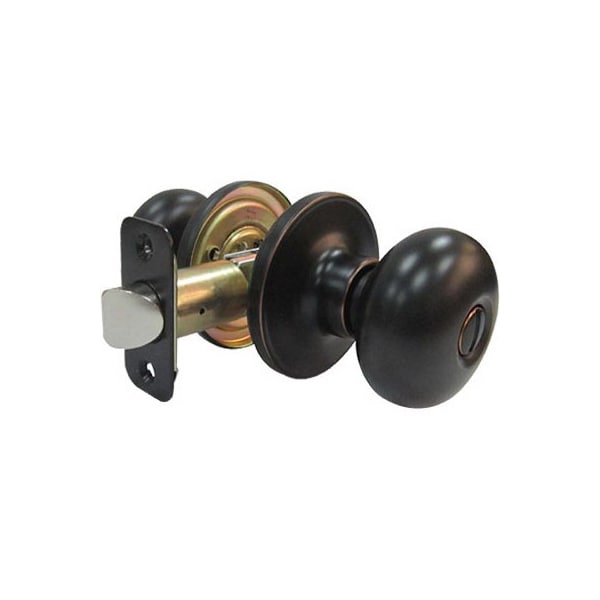 TruGuard, Aged Bronze, Mushroom Privacy Lockset, Adjustable Backset, Slotted Emergency Release Requires No Tool