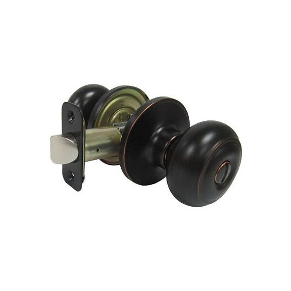 Tru Guard, Aged Bronze, Verona Fancy Mushroom Privacy Knob Sets, Turn Button Lock, Adjustable Latch 238 To 234 With Radiuses Faceplates Or Drive In