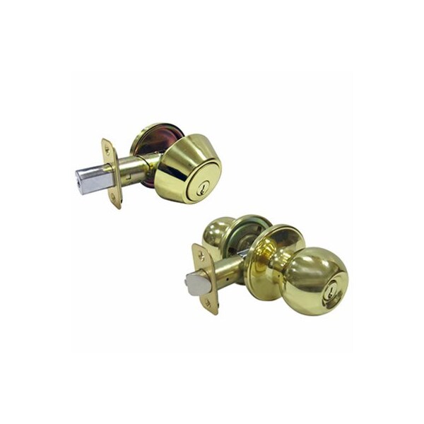 TruGuard, Polished Brass Combination Lockset, Includes 1 Keyed Entry Lockset 1 Single Cylinder Deadbolt, Ball Style Entry Knob, For Exterior Doors, 5 Pin Cylinder, ReKeyable, KW1 Keyway, 3 Keys Provided, Adjustable Backset 238 Or 234, Keyed Alike In Sets Of 3, Utilize TV 113174 EZ1TRV When Making Duplicate Keys