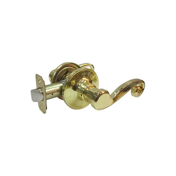 TruGuard, Polished Brass, Hall Closet Reversible Scroll Lever Passage Lockset, For Right Hand Left Hand Installations, Adjustable Backset 238 Or 234, Radius Or Drive In Option Latches