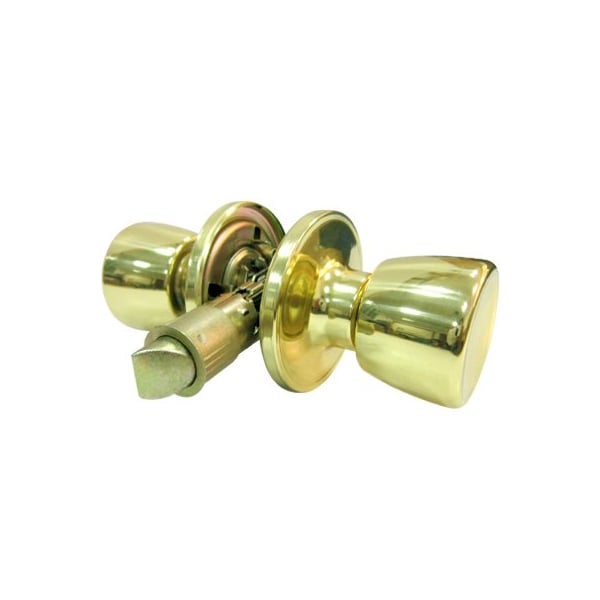 TruGuard, Polished Brass Finish, Tulip Style Knob Mobile Home Passage Lockset, ANSI Grade 3, Drive In Latch, Fix Backset 238