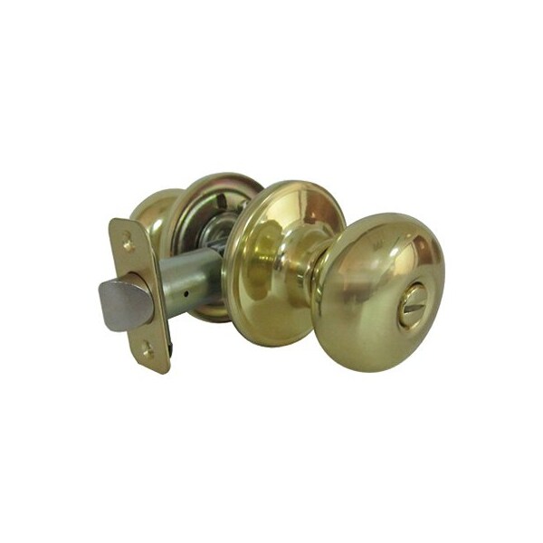 TruGuard, Polish Brass, Mushroom Privacy Locksets, ANSI Grade 3, Adjustable Backset 238 Or 234 Consumer Friendly Slotted Emergency Release Does Not Require A Special Tool