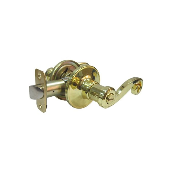 TruGuard, Polished Brass, Reversible Scroll Privacy Lockset, For Both Right Left Installations, 238 234, Adjustable Backset, Simple Slot For Emergency Release