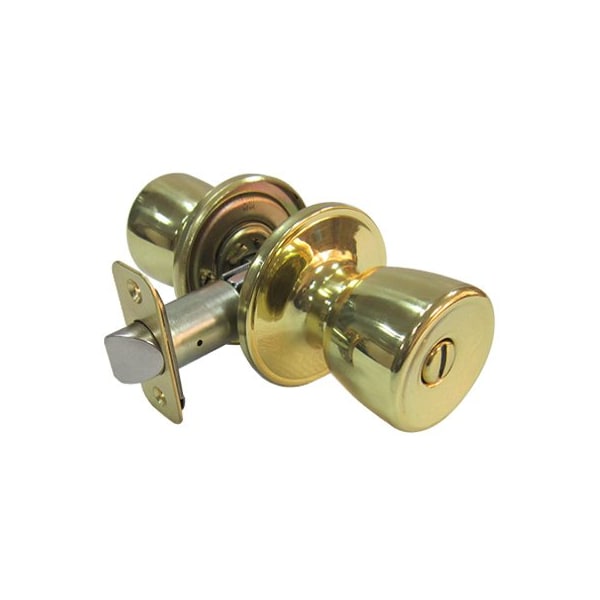 TruGuard, Polished Brass Finish, Medium Tulip Style Knob Privacy Lockset, Tubular Latch With Adjustable Backset, Use Where Privacy Is Required, For Interior Doors, Grade 3