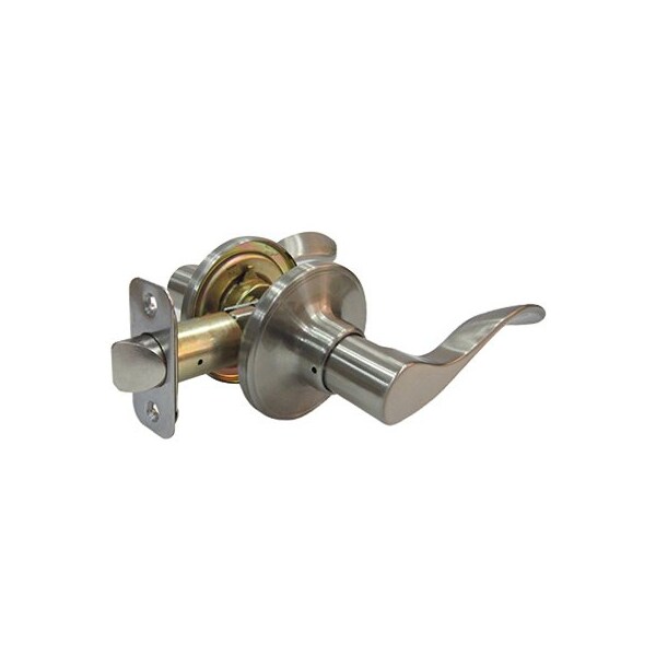 TruGuard, Satin Nickel, Reversible Bergamo Passage Wave Lever Lockset, For Both Right Left Installations, 238 234, Adjustable Backset