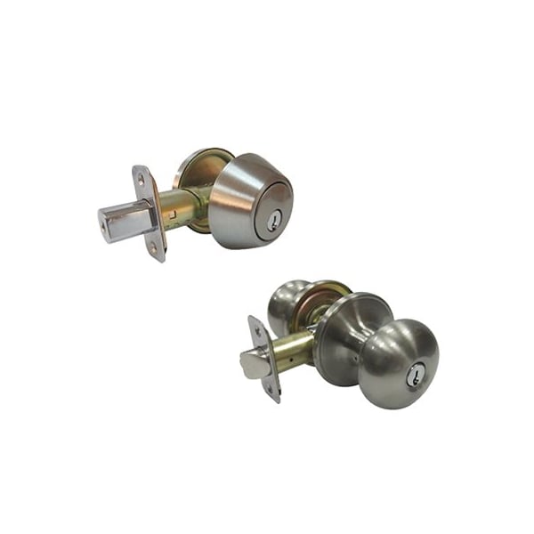 TruGuard, Satin Nickel Finish, Mushroom Combo Lock Pack, Includes1 Keyed Tubular Entry Locksets 1 Single Cylinder Deadbolts, Medium Mushroom Style Knobs, For Exterior Doors, 5 Pin Cylinder, ReKeyable, KW1 Keyway, 3 Keys Provided, Adjustable Latch Backsets For 238 234, Grade 3, Keyed Alike In 3, Utilize TV 113174 EZ1TRV When Making Duplicate Keys