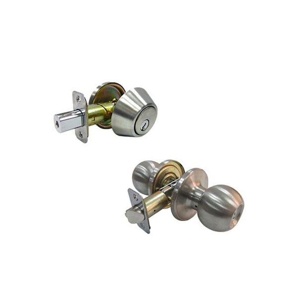 TruGuard, Stainless Steel Combination Lockset, Includes Keyed Tubular Entry Lockset Single Cylinder Deadbolt, Medium Ball Style Entry Knob, For Exterior Doors, 5 Pin Cylinder, Rekeyable, KW1 Keyway, 3 Keys Provided, Adjustable Latch Backset, 234 238, Grade 3, 3 Keyed Alike, Utilize TV 113174 EZ1TRV When Making Duplicate Keys