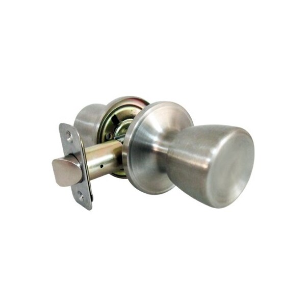TruGuard, Stainless Steel, Medium Tulip Style Knob Passage Lockset, Adjustable Backset, Great For Hall Closets, For Interior Doors, Grade 3