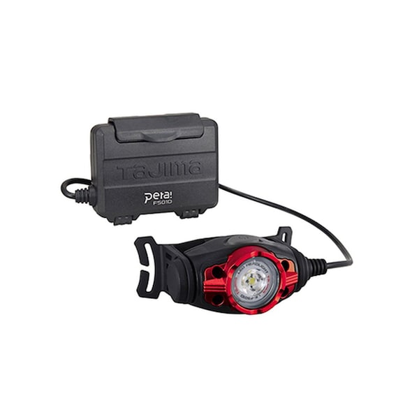 TAJIMA LE-F501D GRATI-LITE F Series Headlamp The External Battery Compartment Operated LED Headlamp. 3 Lighting modes Wide-Angle Beam, 261/4 center beam, 1651/4 Ambient Light Beam. The performance statement is under ANSI/NEMA FL1-2009 standard. The duration of brightness drops below 10% of the startup value. Illuminated surface diameter is approximately 39.3 in 100 cm when emitted at 19.6 in 50 cm away from the subject 3 Lighting modes of brightness: 500 lm, 250 lm, 50 lm The external battery compartment can be easily opened or closed while wearing gloves 3 x AA 1.5V batteries