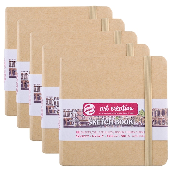 Talens Art Creation sketchbooks are sturdy, hard-bound sketchbooks perfect for drawing, journaling, urban sketching, field studies and more! Ideal for use with pencil, pastel, acrylics, gouache, ink, charcoal, and light washes of wet media. They contain 80 pages of off-white, acid-free, 140 g/mSqrd paper and are available in a variety of sizes and colors, so you can find the perfect sketchbook for your needs. Sold as a pack of 5.