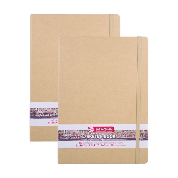 Talens Art Creation sketchbooks are sturdy, hard-bound sketchbooks perfect for drawing, journaling, urban sketching, field studies and more! Ideal for use with pencil, pastel, acrylics, gouache, ink, charcoal, and light washes of wet media. They contain 80 pages of off-white, acid-free, 140 g/mSqrd paper and are available in a variety of sizes and colors, so you can find the perfect sketchbook for your needs. Sold as a pack of 2.