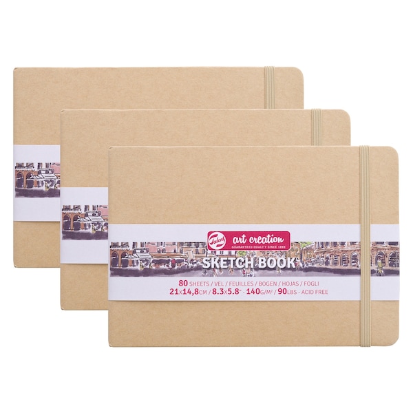 Talens Art Creation sketchbooks are sturdy, hard-bound sketchbooks perfect for drawing, journaling, urban sketching, field studies and more! Ideal for use with pencil, pastel, acrylics, gouache, ink, charcoal, and light washes of wet media. They contain 80 pages of off-white, acid-free, 140 g/mSqrd paper and are available in a variety of sizes and colors, so you can find the perfect sketchbook for your needs. Sold as a pack of 3.