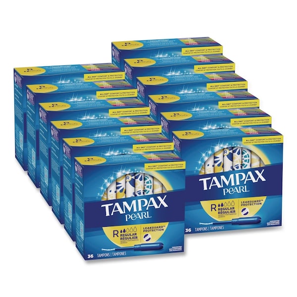 Tampax® Pearl Tampons, Regular, 36/Box, 12 Box/Carton