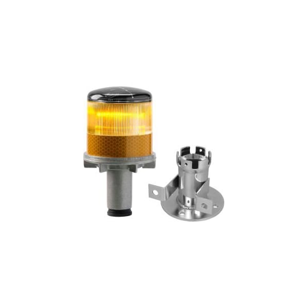 3337-00002 SOLAR POWERED LED STROBE LIGHTS, AMBER BULB THESE STROBE LIGHTS HAVE 4 HIGH-INTENSITY LEDS THAT FLASH IN LOW LIGHT CONDITIONS. THE BUILT-IN SOLAR PANEL ON TOP CHARGES THE NIMH BATTERY EVEN ON CLOUDY DAYS. LIGHT DOES NOT OPERATE DURING THE DAYTIME, WHILE IT IS CHARGING. LIGHT INCLUDES PHOTOCELL AND WILL ONLY RUN AT NIGHT. ON A FULL CHARGE, THE LEDS WILL FLASH CONTINUOUSLY FOR 5 FULL NIGHTS, EVEN WITHOUT THE SUN TO RECHARGE. THE STROBE LIGHTS CAN BE MOUNTED WITH THE OPTIONAL BASE, OR INSERTED INTO CONES WITH A 1 5/16" OR LARGER TOP HOLE. IT WILL NOT FIT INTO ALL TRAFFIC CONES, SO CHECK YOUR CONE'S TOP HOLE DIAMETER. FEATURES: