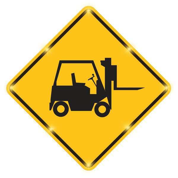 LED Flashing Stop for Forklift Sign, Forklift, Black/Yellow, 30" W, 30" H