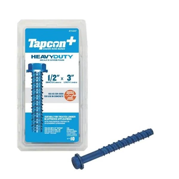 Tapcon Concrete Screw, 1/2" Dia., 3 in. L, Steel 10 PK