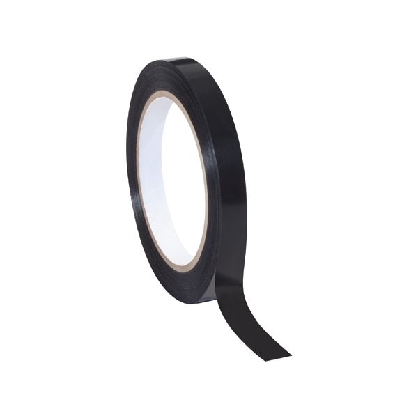 This tape utilizes mono-oriented tensilized polypropylene for light-duty strapping, palletizing and bundling. Temperature-resistant to 160 degreesF; Adhesion to steel 60 ounces per inch; Elongation at break 34%; 2.7 Mil; Black. Sold in a quantity of 12 per case.