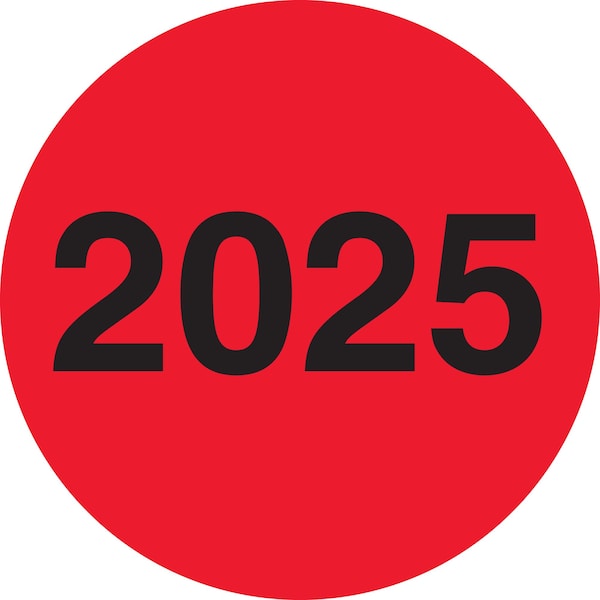 2in Circle - in2025in Fluorescent Red Year Labels