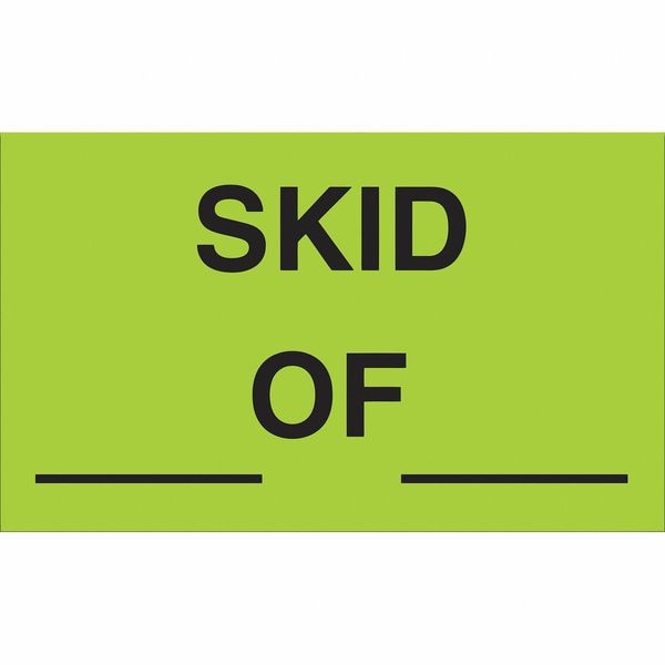Labels, " Skid _ of _", 3"x5", Fluorescent Green, 500 Labels/Roll