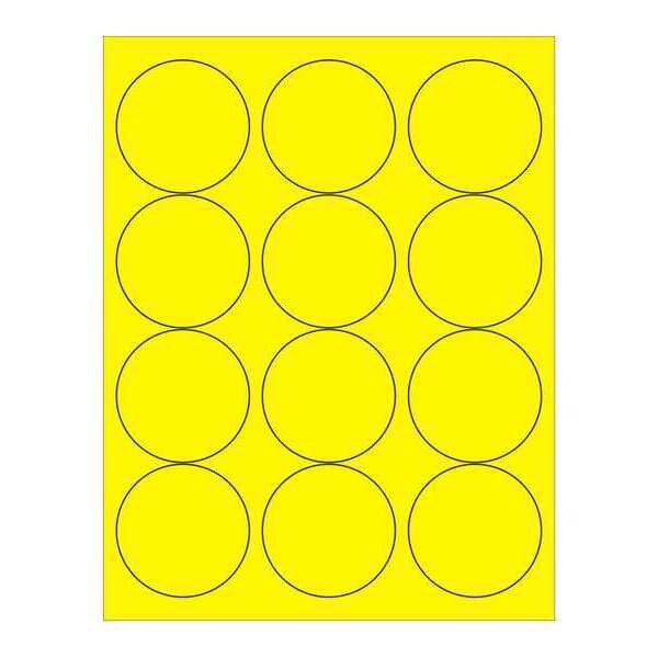 Circle Laser Label,2-1/2",FL Yell,PK1200