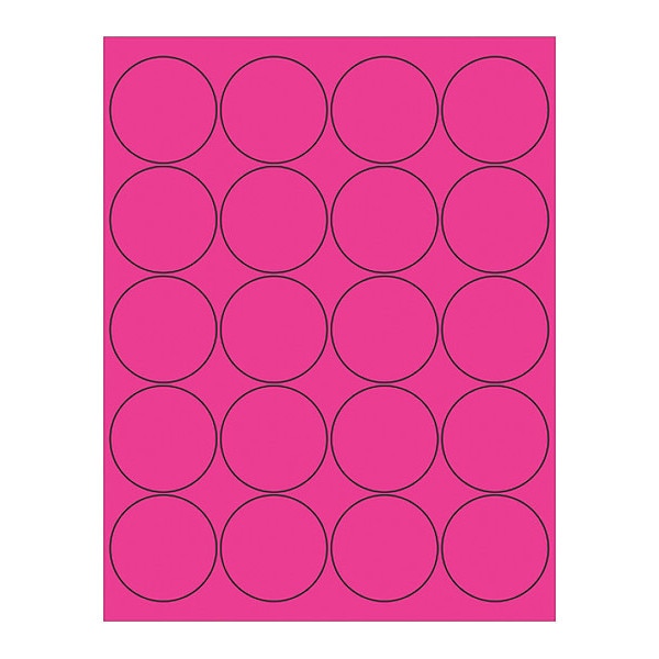 Tape Logic Circle Laser Labels, 2", Fluorescent Pink, PK2000