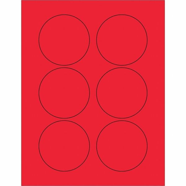 Fluor. Circle Laser Label,3",Red,Package Quantity 600