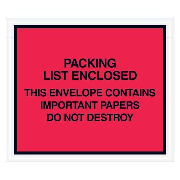 Tape Logic "Important Papers Enclosed" Envelopes, 7" x 6", Red, PK1000