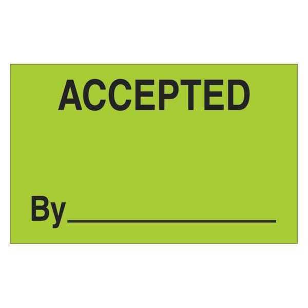 Tape Logic Labels, "Accepted By", 1 1/4" x 2", Fluorescent Green, 500/Roll