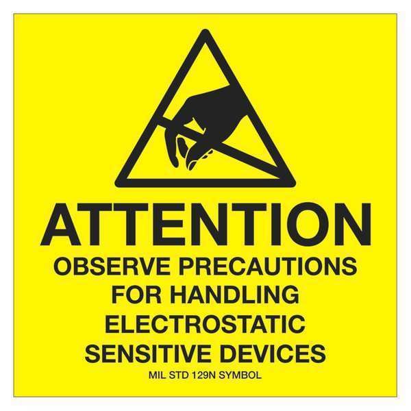 Tape Logic Labels, "Attention - Observe Precautions", 4" x 4", Black/Yellow, 500/Roll
