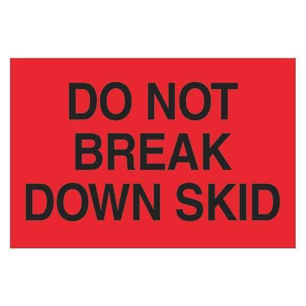 Tape Logic Labels, "Do Not Break Down Skid", 2" x 3", Fluorescent Red, 500/Roll