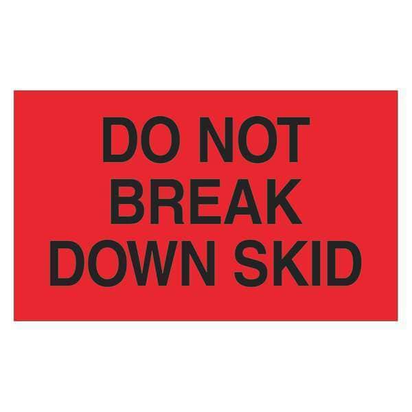 Tape Logic Labels, "Do Not Break Down Skid", 3" x 5", Fluorescent Red, 500/Roll