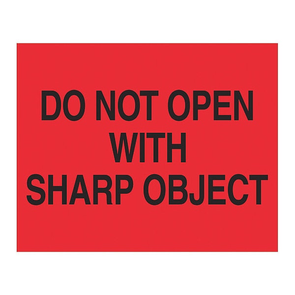 Tape Logic Labels, "Do Not Open with Sharp Object", 8 x 10", Fluorescent Red, 250/Roll