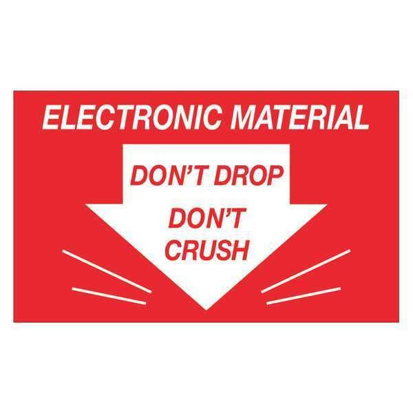 Tape Logic Labels, "Don't Drop Don't Crush - Electronic Material", 3" x 5", Red/White, 500/Roll