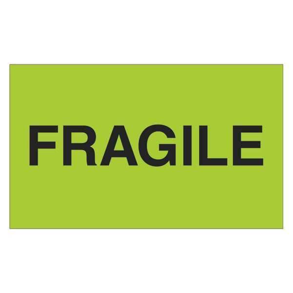 Tape Logic Labels, "Fragile", 3" x 5", Fluorescent Green, 500/Roll