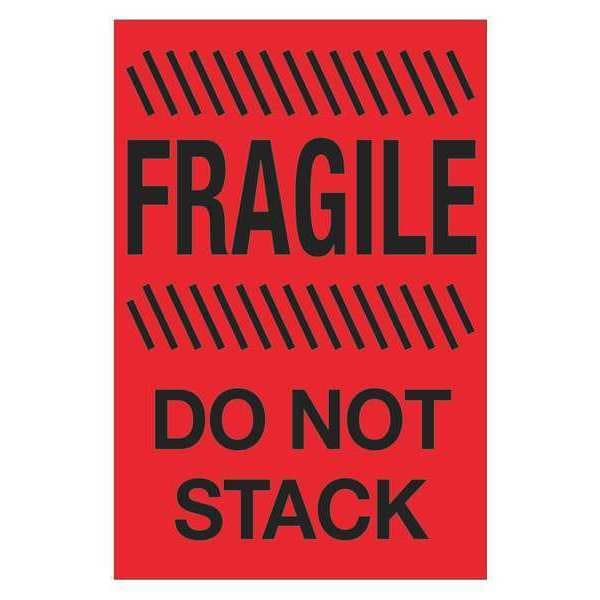 Tape Logic Labels, "Fragile - Do Not Stack", 4" x 6", Fluorescent Red, 500/Roll